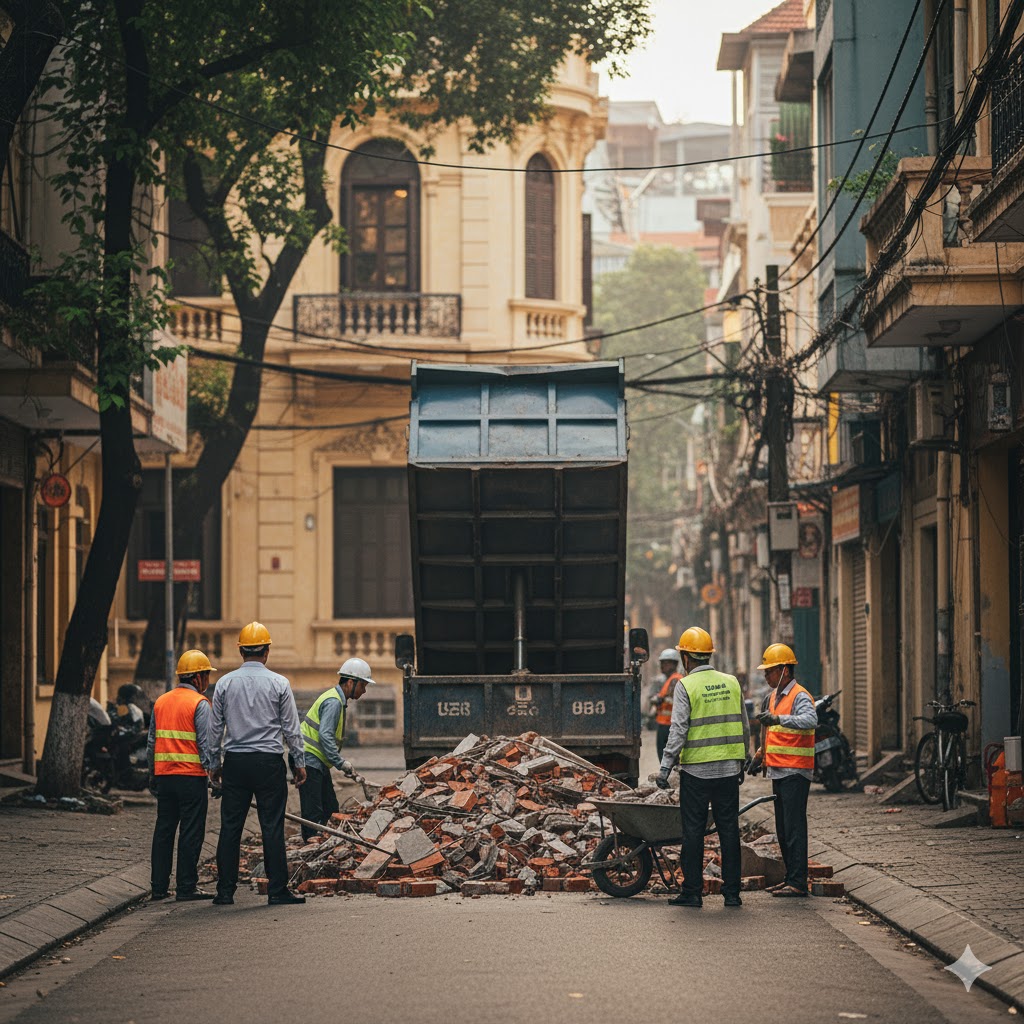 Các công trình xây dựng, sửa chữa nhà cửa tại quận Ba Đình luôn đối mặt với vấn đề nan giải: xử lý trạc thải, phế thải xây dựng. Với đặc thù là quận trung tâm, nhiều tuyến phố nhỏ, ngõ hẹp và quy định nghiêm ngặt về vệ sinh đô thị, việc tự vận chuyển không chỉ tốn thời gian, công sức mà còn dễ vi phạm quy định.